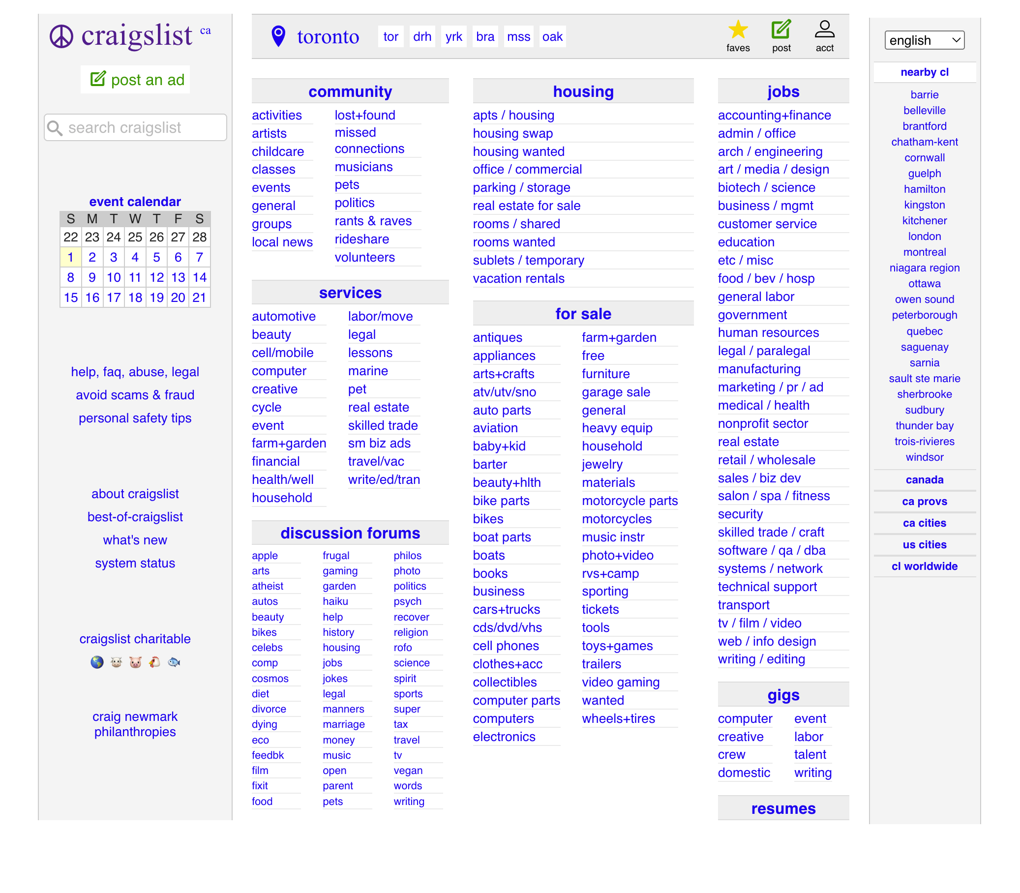 Craigslist looks like it hasn't been updated since 1997. Still dominates classified ads.